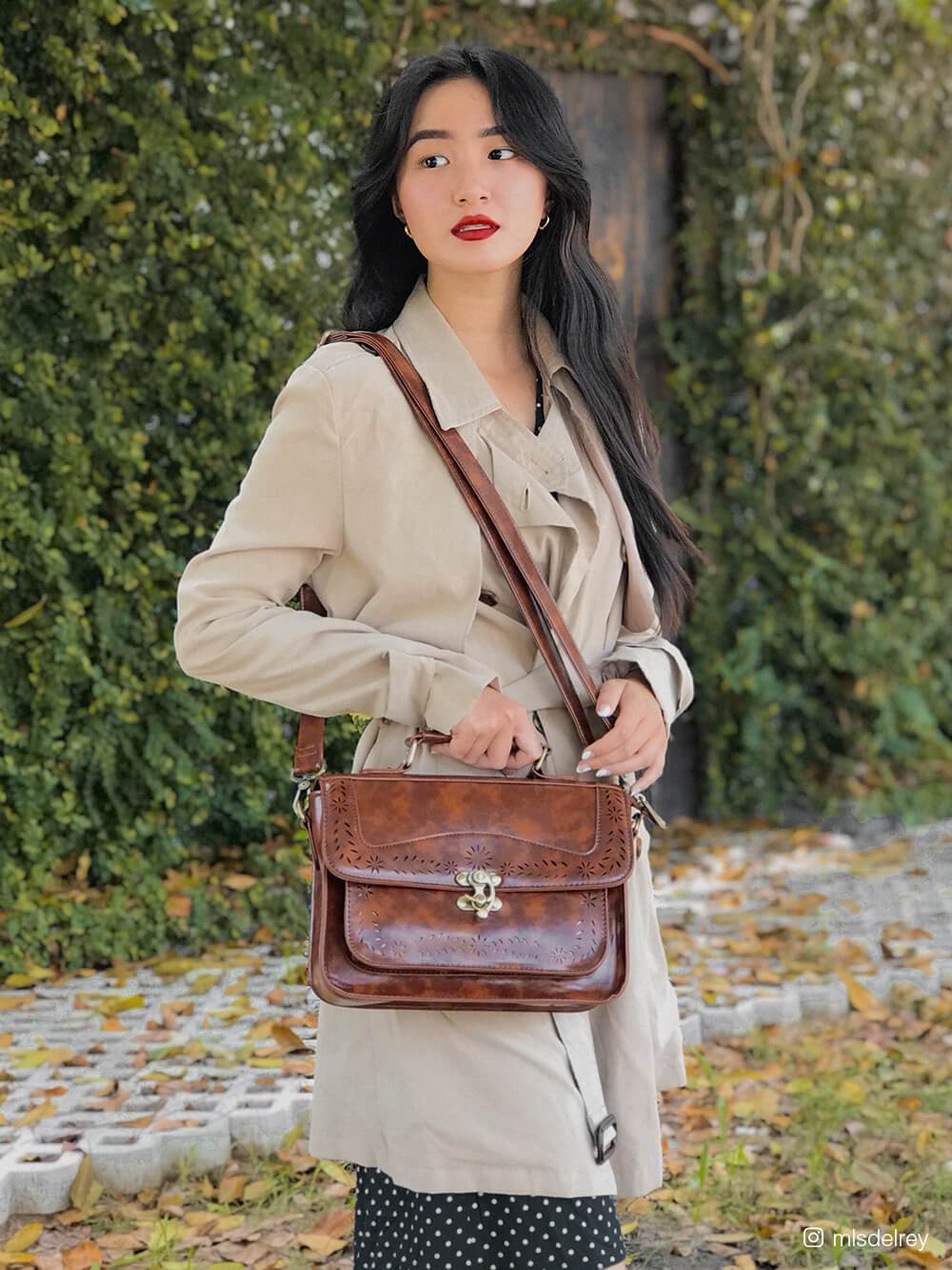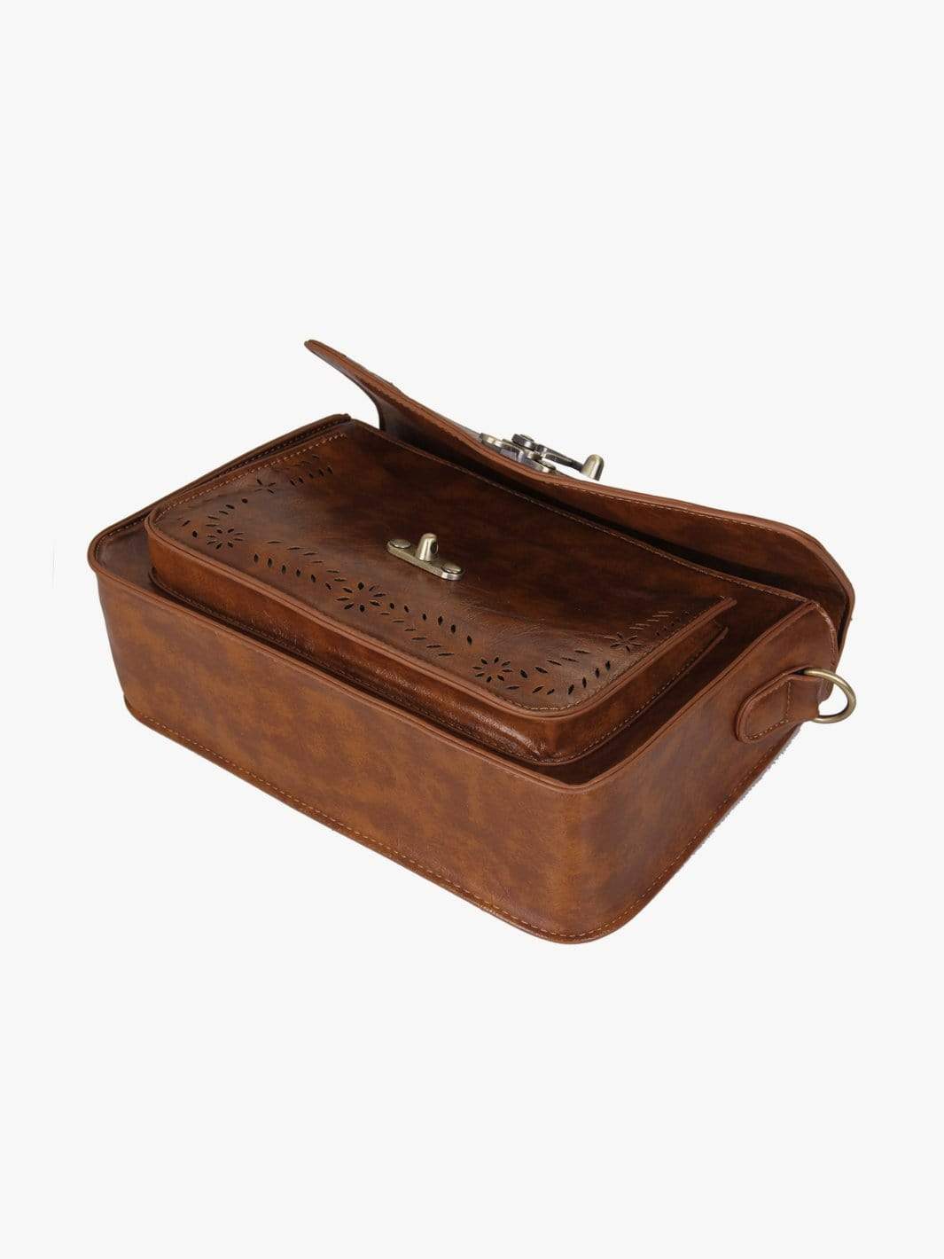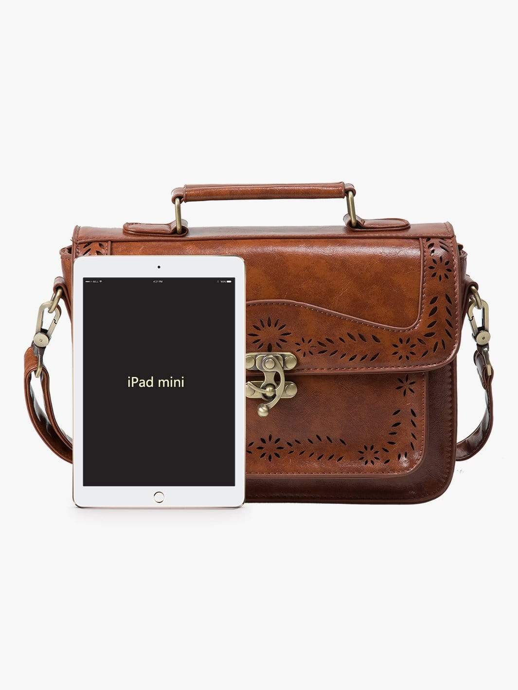 Specifications: Women's Hollowed-Out Messenger Bag Features genuine (faux) synthetic leather with perfect metal finishing and polyester tan lining Closure.